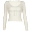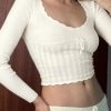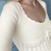 Unique Details: The pointelle design and wavy trim add a vintage and girlish charm to this top, making it distinctive and fashionable.