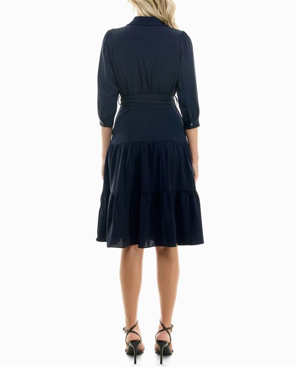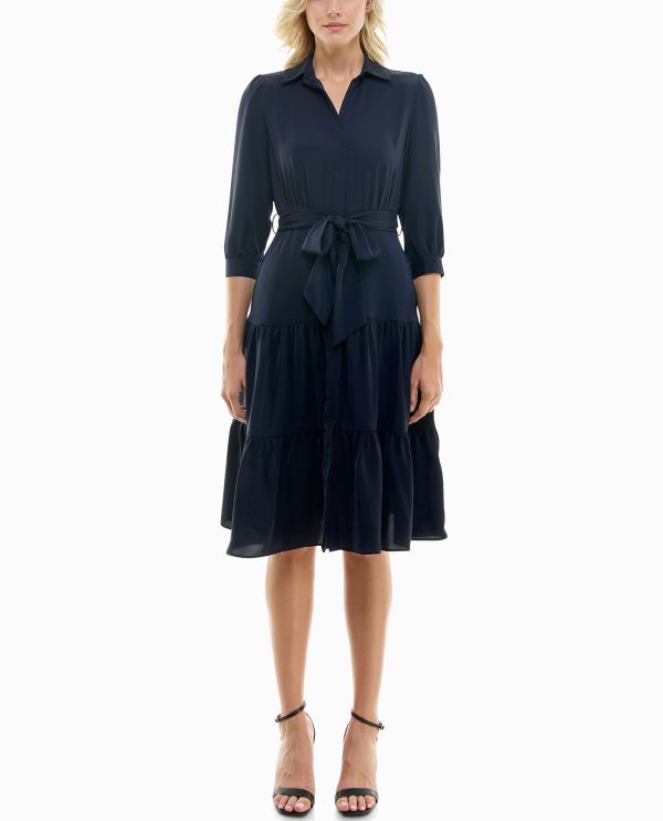 Knitponcho SHIRT DRESS, COLLARED, TIE FRONT, BUTTON UP, SHORT SLEEVE