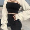 Metallic Chain Embellished Shrug Crop Sweater