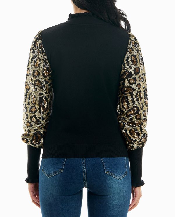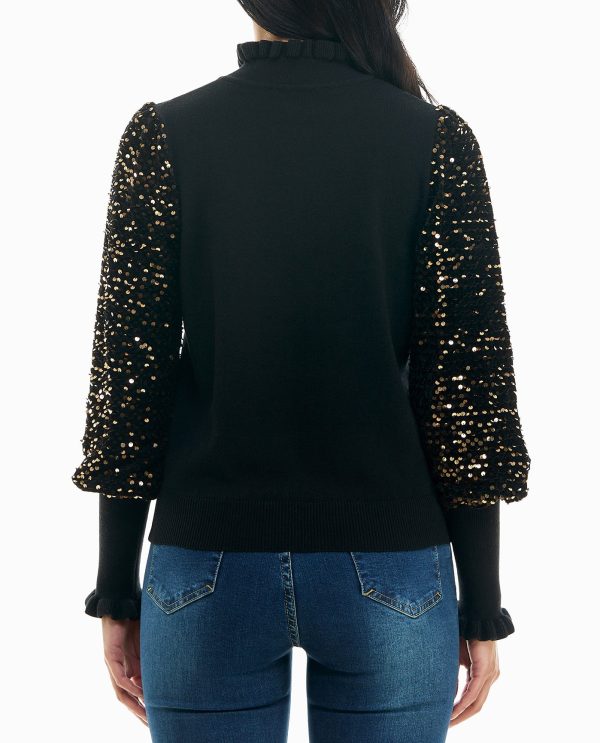 / sequins ruffle neck long sleeve sweater